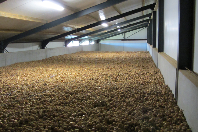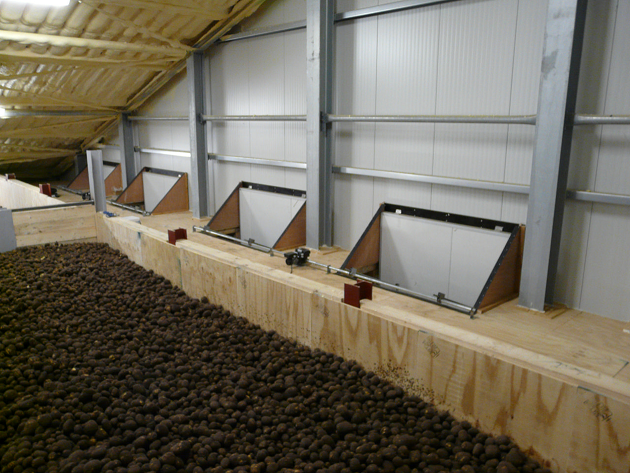 堆垛高度可達4至5米,是一種儲存期較長的倉儲形式,散裝及袋裝倉儲可以帶來高質量的產品與較低廉的倉儲成本。無論您儲存的是砂質土壤中收獲的馬鈴薯或者是潮濕氣候下的洋蔥,牧易倉儲可為您提供完整與正確的倉儲通風系統。整套系統加熱,機械制冷,加濕系統可以根據氣候條件不同而靈活配置。